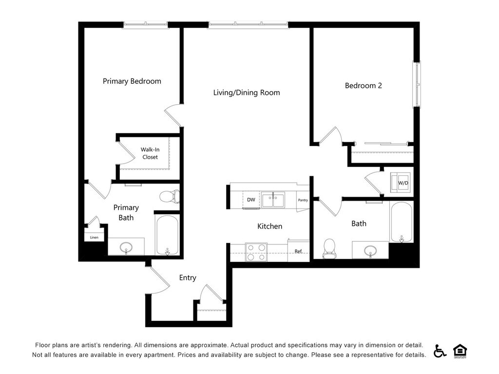 S4 - Plano 1 Los planos de la planta son una interpretación artística. Todas las dimensiones son aproximadas. Los tamaños o el detalle del producto real y sus especificaciones pueden variar. No todas las características están disponibles en todos los hogares para rentar. Los precios y la disponibilidad están sujetos a cambios. El alquiler que se muestra es mensual. Se pueden aplicar ciertos cargos, por ejemplo, entrega de paquetes, recolección de basura, agua, servicios, etc. Depositos varian. Consulta a un representante para conocer detalles.