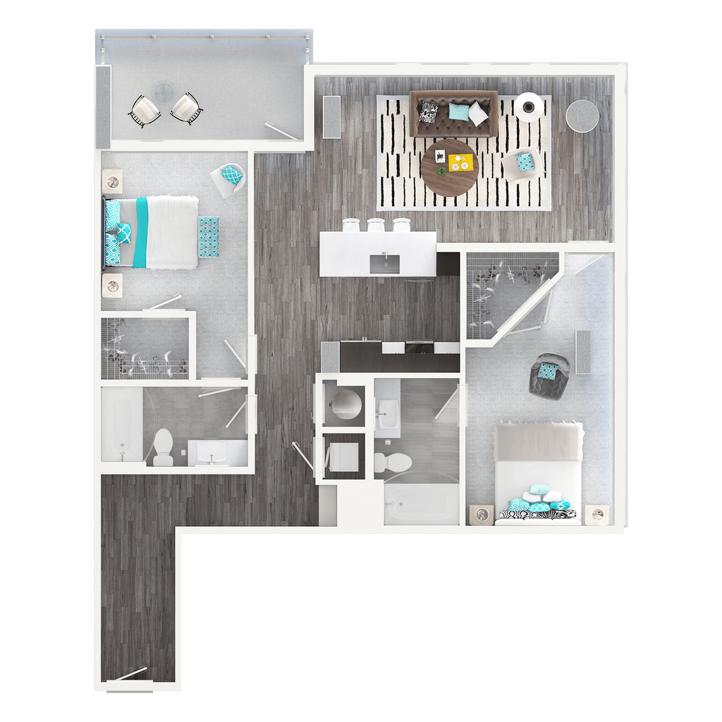 - Amplias terrazas privadas de hasta 555 pies cuadrados