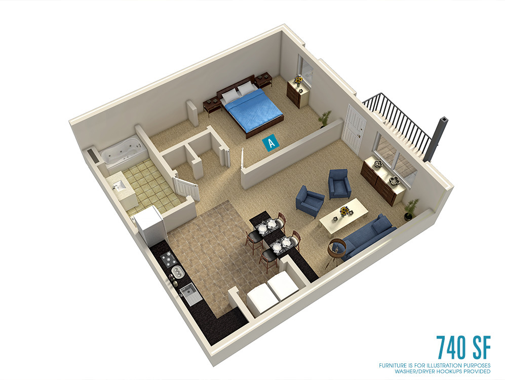 Modelo de apartamento: 1 Bed - 1 Bath$1,0991 Dormitorio, 1 Baño, 740 sq ftNo Disponible1 Bed - 1 Bath - Plano 1 2 Dormitorios