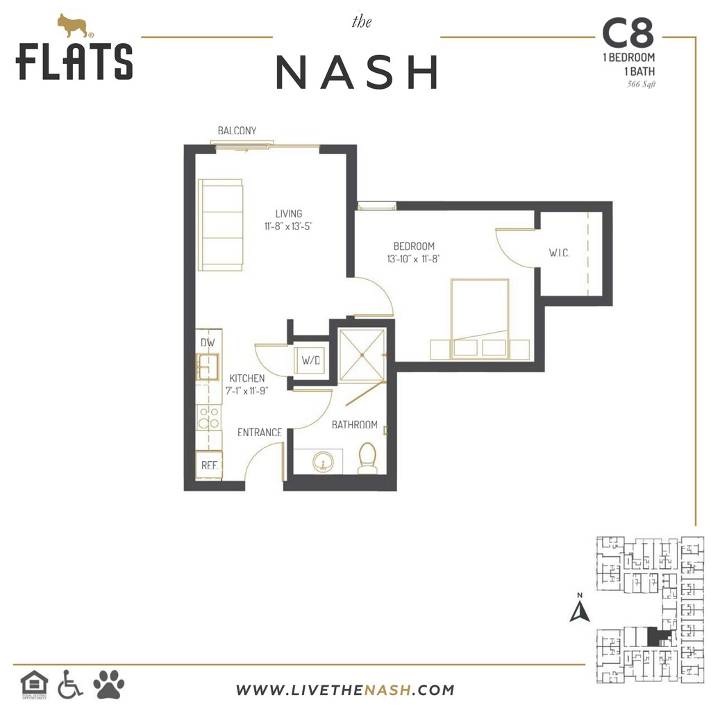 The Nash ofrece apartamentos de Estudio a 2 Dormitorios desde $2,037 con 414–763 pies cuadrados. Aquí está el precio actual y la disponibilidad: