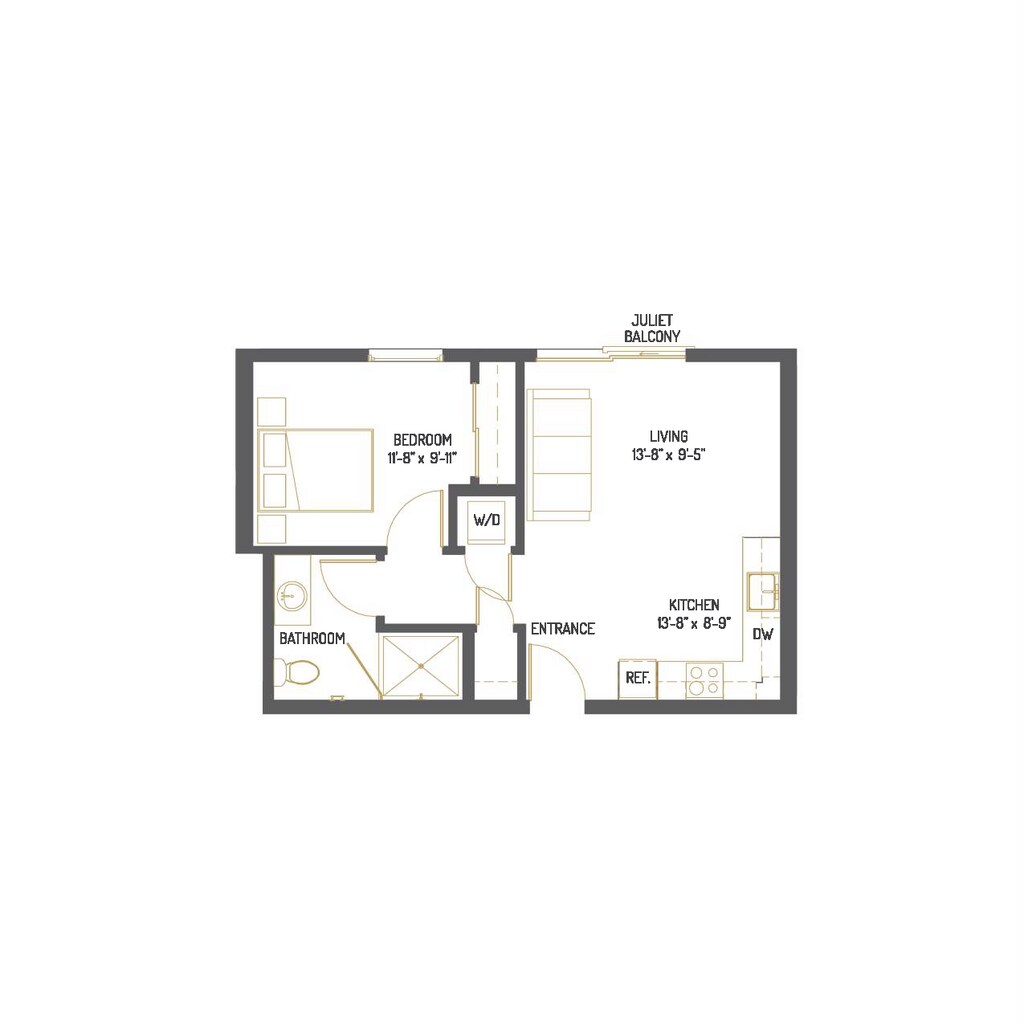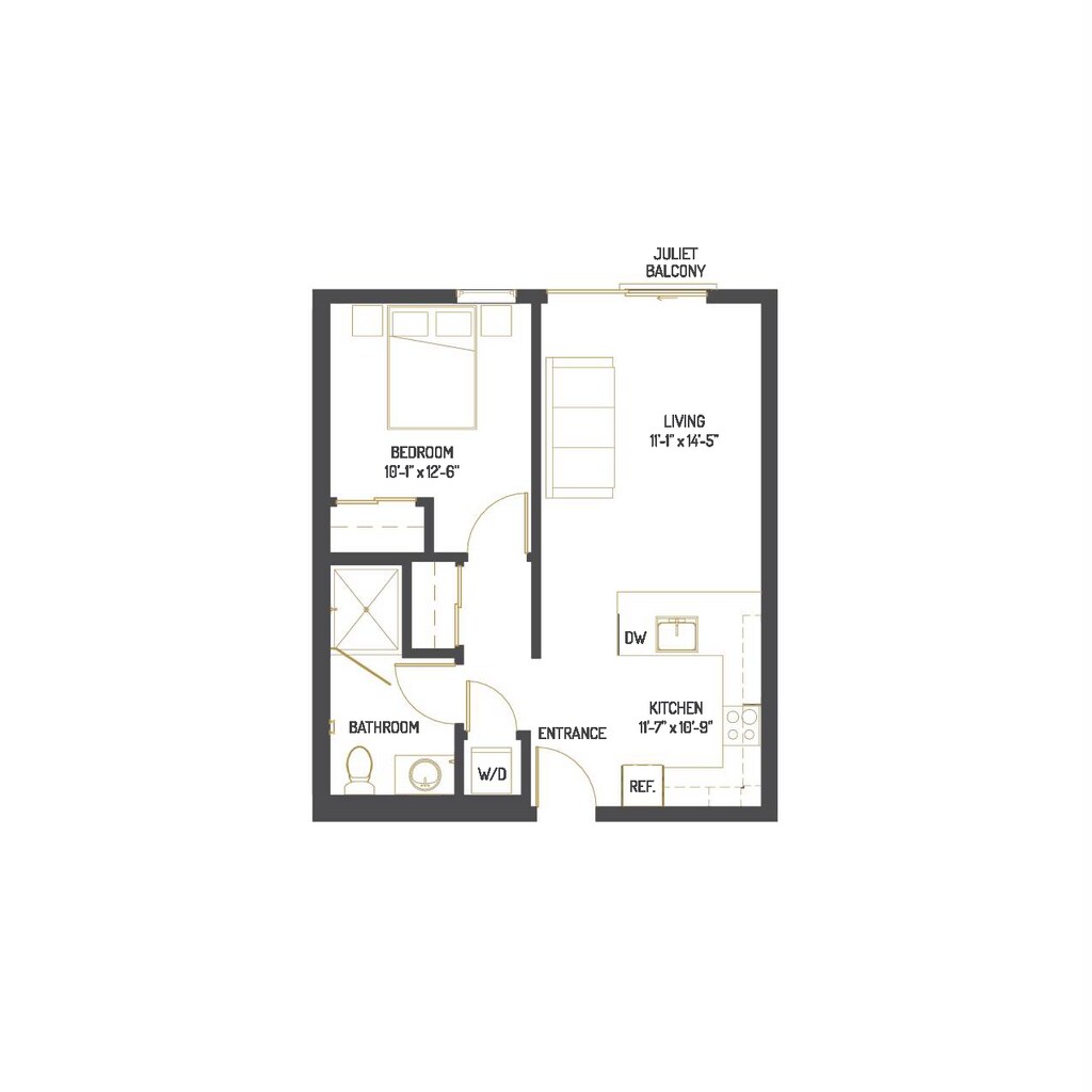 Estudio, 1 Baño, 428 pies²Disponible AhoraGalería del Modelo