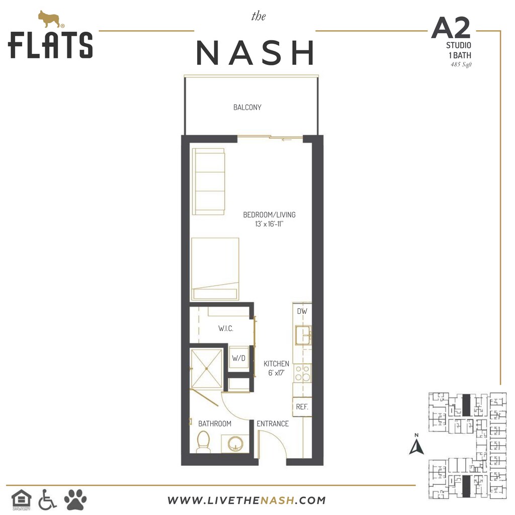 Modelo de apartamento: A5Desde $2,190Estudio, 1 Baño, 428 sq ftDisponible Ahora![]()