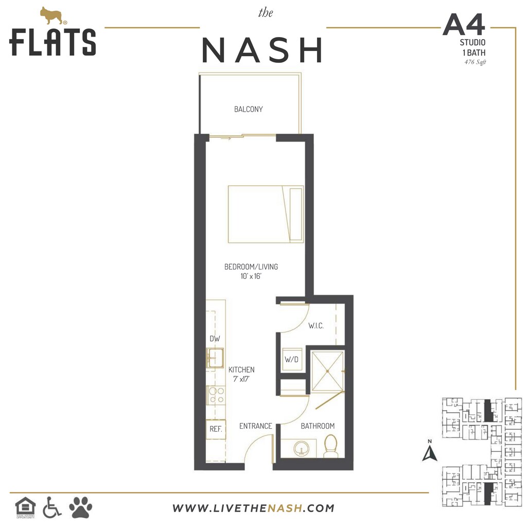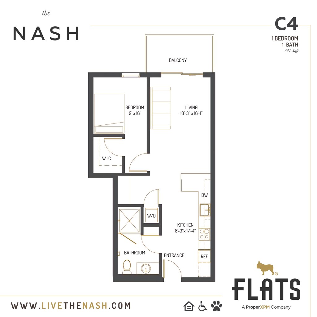The Nash se encuentra en el Barrio Uptown San Diego y el código postal 92103 de San Diego, CA. Esta comunidad está gestionada profesionalmente por FLATS