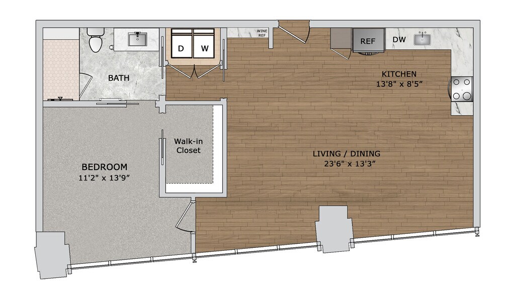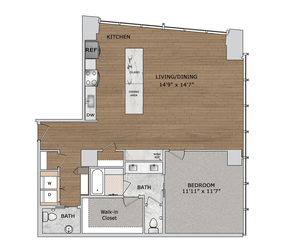 1 Dormitorio, 1 Baño, 838 pies²Disponible AhoraGalería del Modelo