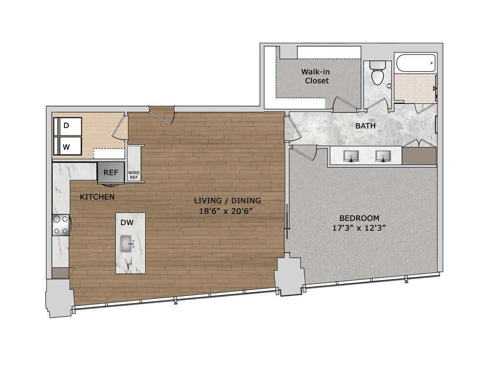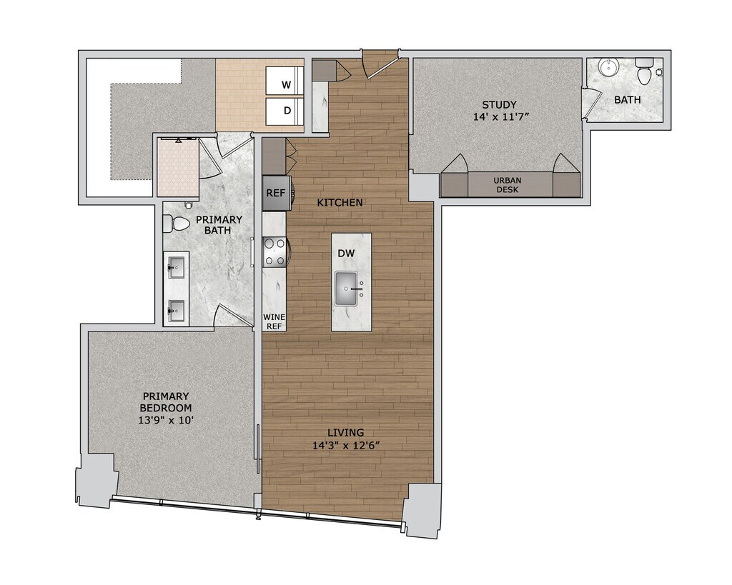 Modelo de apartamento: A1Desde $2,5801 Dormitorio, 1 Baño, 751 sq ftDisponible AhoraPlanosFotos![]()