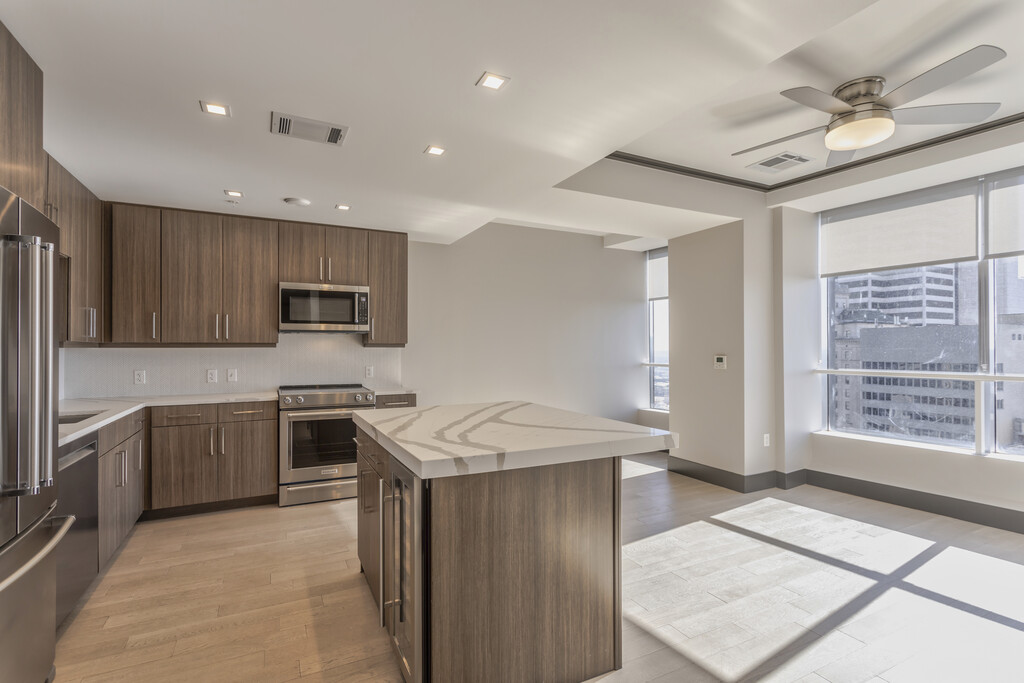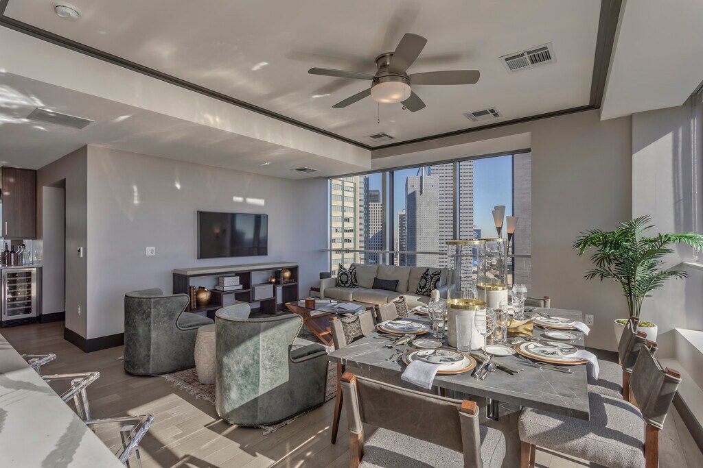 Preservación histórica, comodidades modernas y servicios inigualables. The National cuenta con lujosas residencias de alta gama disponibles para contratos de arrendamiento. Los residentes de National tendrán acceso a más de dos acres de espacios de comodidades que incluyen un conserje de mascotas, spas, bar privado y terraza en la piscina del noveno piso. Los apartamentos de National cuentan con las mejores vistas de todos los edificios residenciales de Dallas y con acabados interiores personalizados.