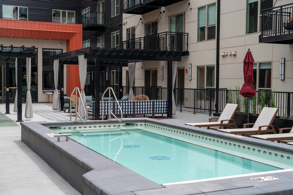 The Nine at Lexington offers a unique living experience with a strong commitment to sustainability, emphasizing a balanced lifestyle where you can live, work, and play from home. Our apartments feature in-unit carbon-neutral living, complemented by the state's largest solar installation for a new multi-family building. We prioritize environmentally focused practices, creating a community where residents can enjoy modern comforts while contributing to a healthier planet. Our extensive amenities include remote workspaces, a pet spa, a fitness center, a game room with golf simulator, a clubroom, a sauna/wellness room, a bike room, underground parking, and an outdoor courtyard with a sun deck pool, grills, and entertaining space. Our well-appointed apartments boast stainless steel appliances, luxury vinyl plank flooring, granite countertops, in-unit washers and dryers, and other modern finishes.