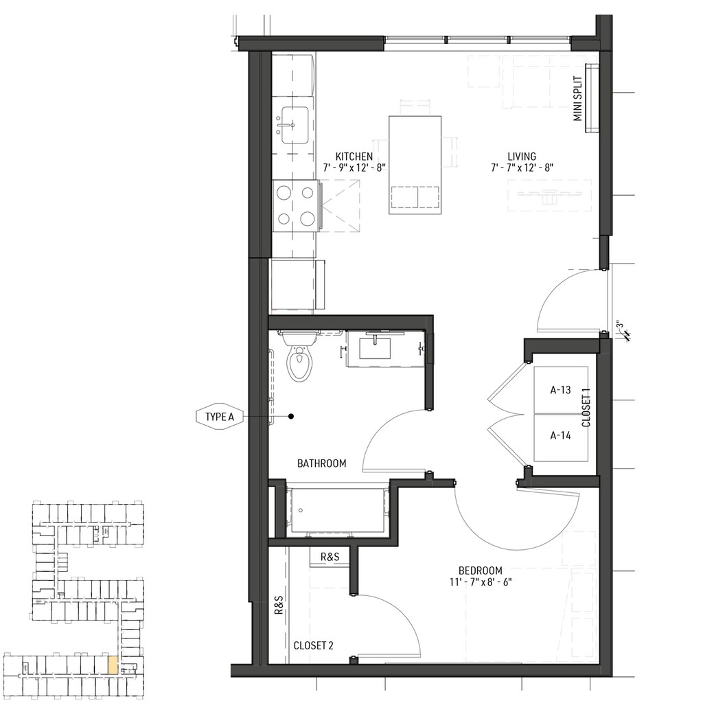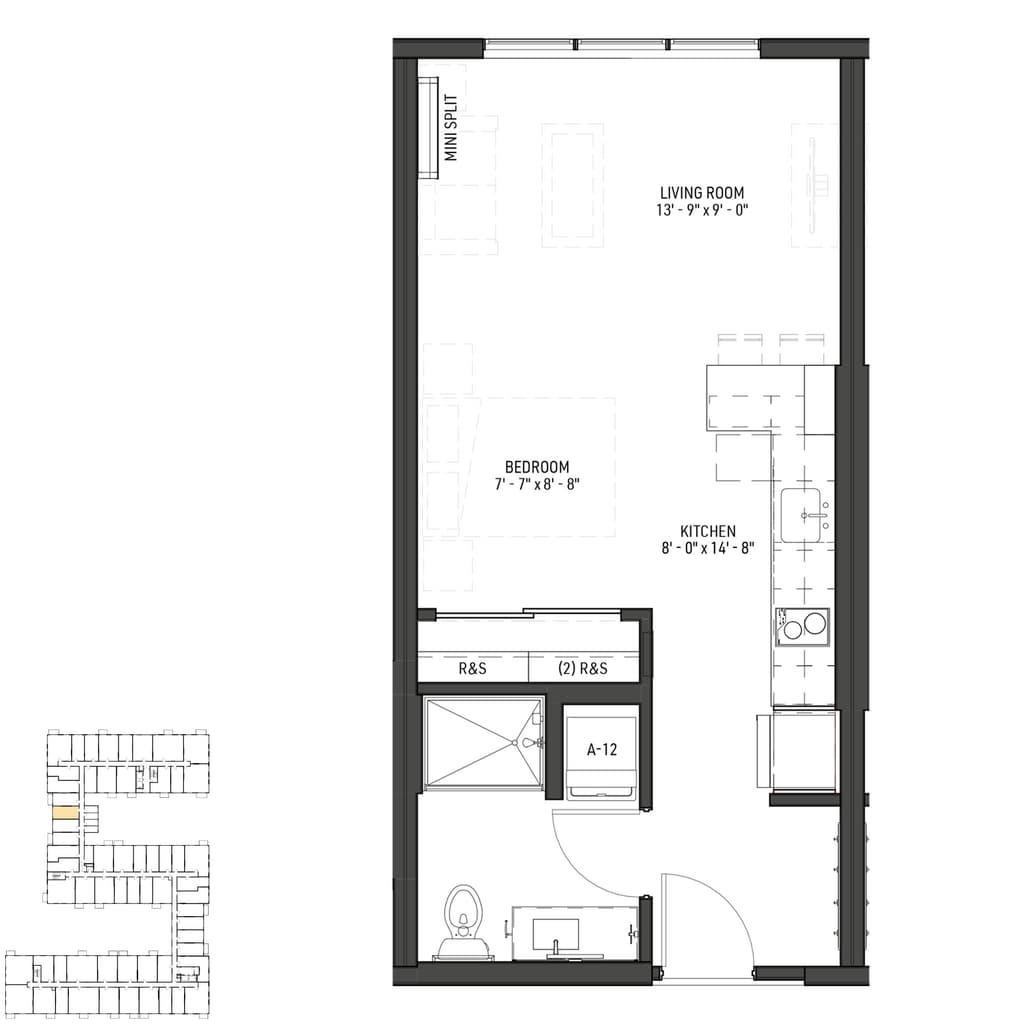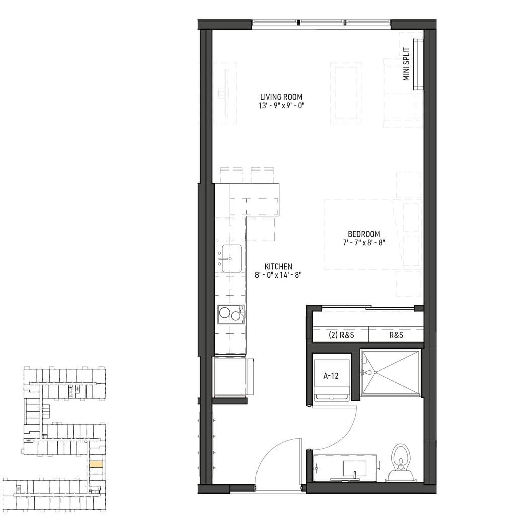 Nicollet - S2 60% AMI - Plano 1 Unidad de apartamento: 425Modelo de apartamento: Nicollet - S2 60% AMI$1,210Estudio, 1 Baño, 414 sq ftDisponible Ahora![]()