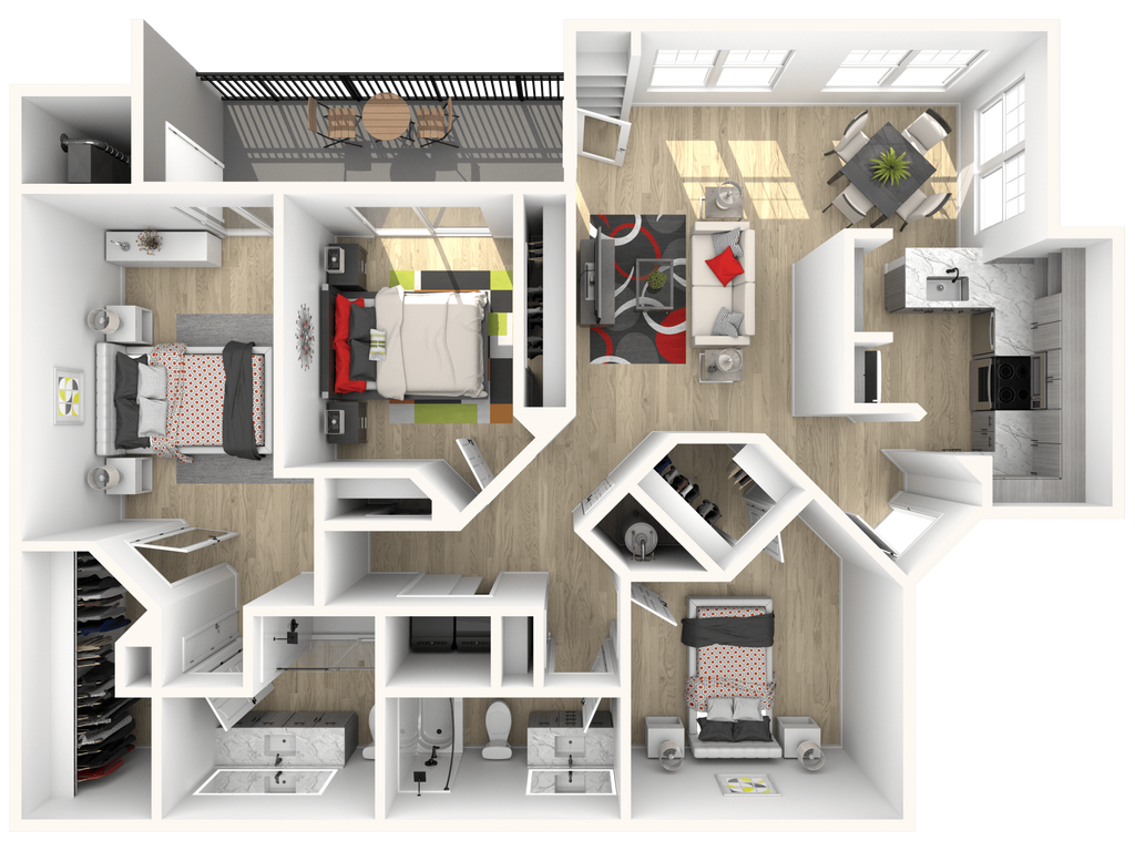 Modelo de apartamento: 1x1 Deluxe$2,2151 Dormitorio, 1 Baño, 924 sq ftDisponible January 16, 2026![]()