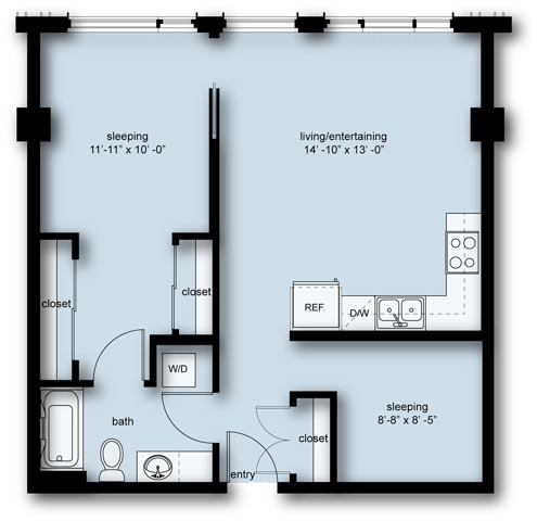 Modelo de apartamento: 1 Open 1 Bath BN11 Dormitorio, 1 Baño, 868 sq ftNo Disponible![]()