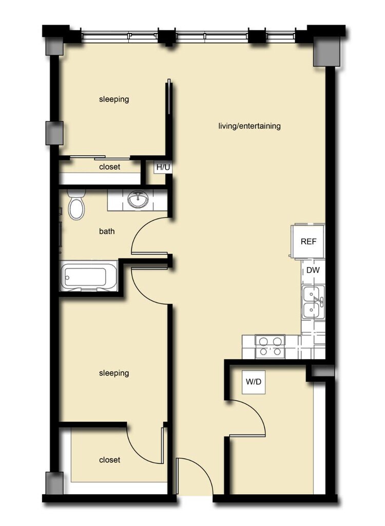 Modelo de apartamento: 1 Open 1 Bath BN61 Dormitorio, 1 Baño, 604 sq ftNo Disponible![]()