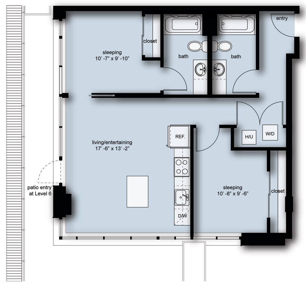 Modelo de apartamento: 1 Open 1 Bath BN41 Dormitorio, 1 Baño, 779-781 sq ftNo Disponible![]()