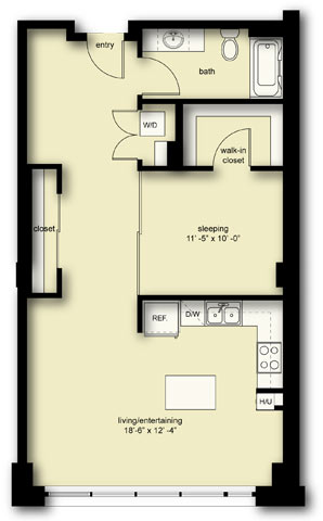 Modelo de apartamento: Studio 1 Bath A1Estudio, 1 Baño, 686 sq ftNo Disponible![]()