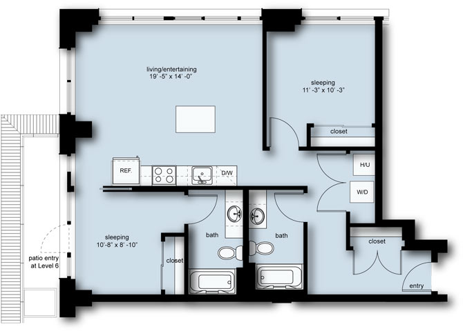 Modelo de apartamento: 1 Bed 1.5 Bath BH11 Dormitorio, 1.5 Baños, 995 sq ftNo Disponible![]()