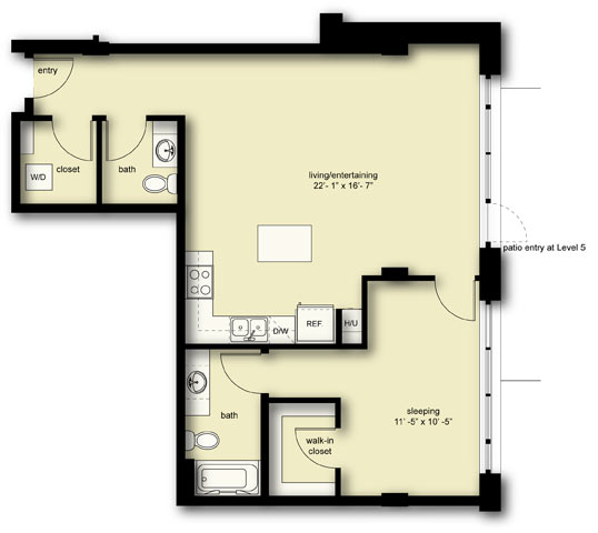 Studio 1 Bath A1 - Plano 1 1 Dormitorio