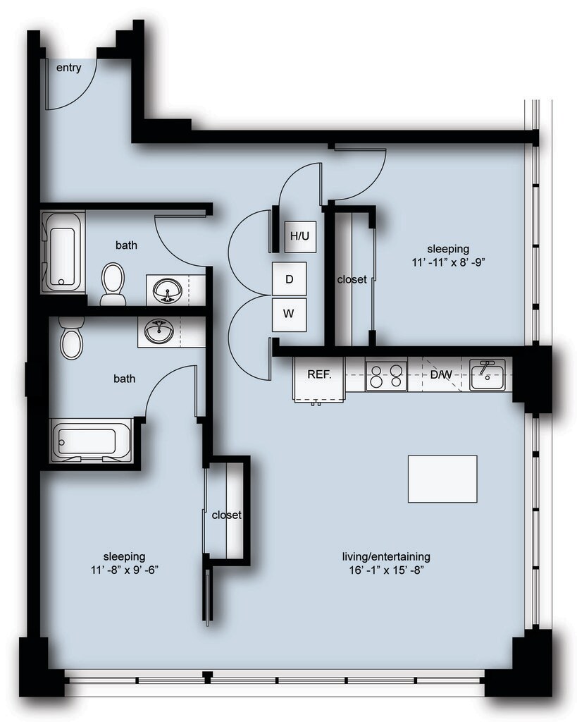 Modelo de apartamento: 1 Bed 1 Bath B21 Dormitorio, 1 Baño, 908 sq ftNo Disponible![]()