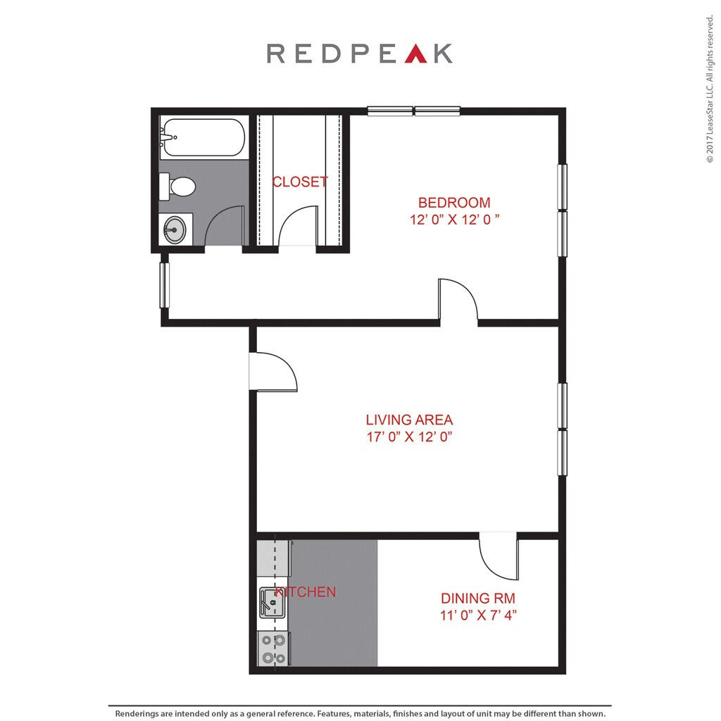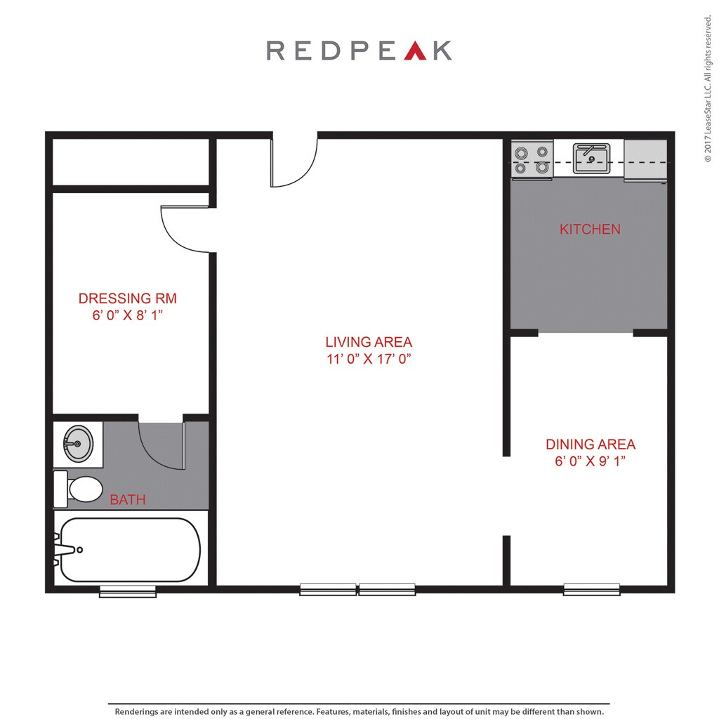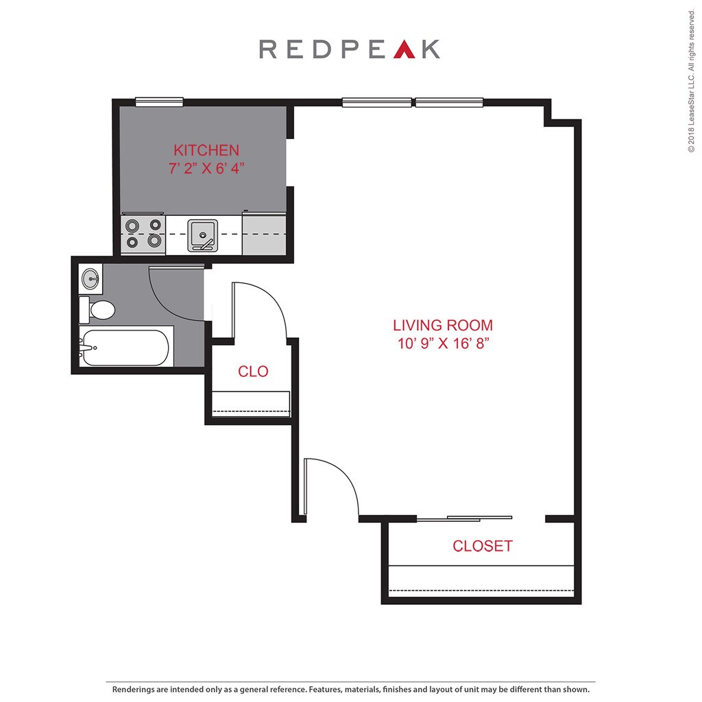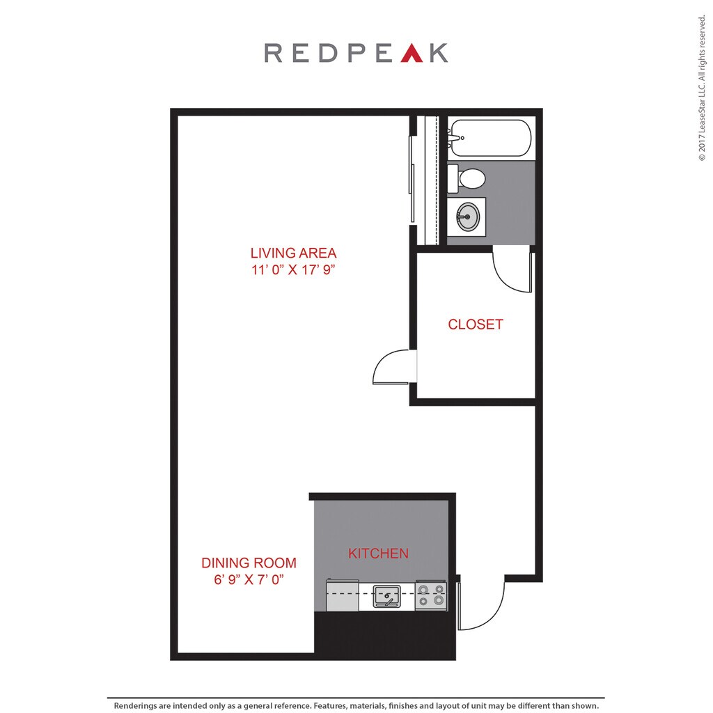 Estudio, 1 Baño, 259 pies²Disponible AhoraGalería del Modelo