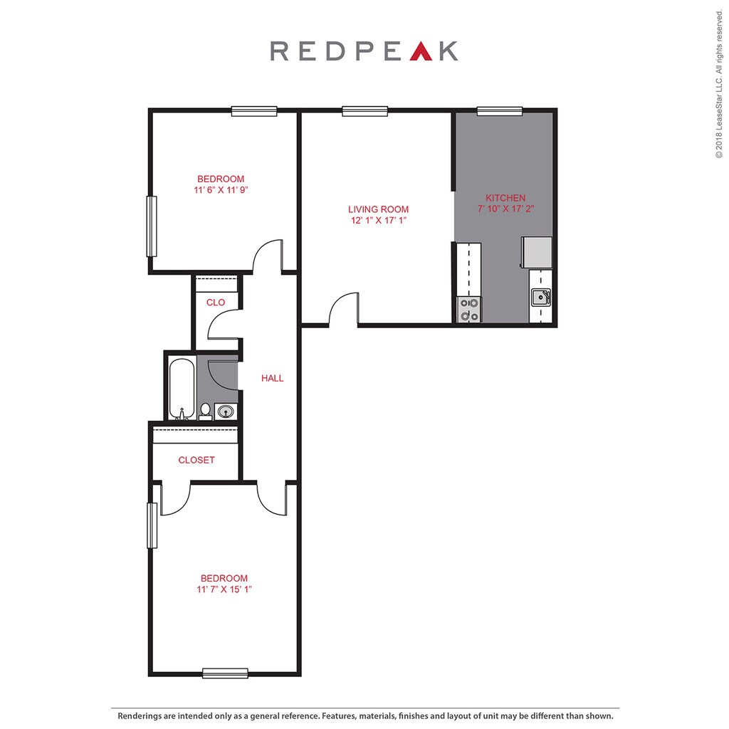 2 Dormitorios, 1 Baño, 810 pies²Galería del Modelo