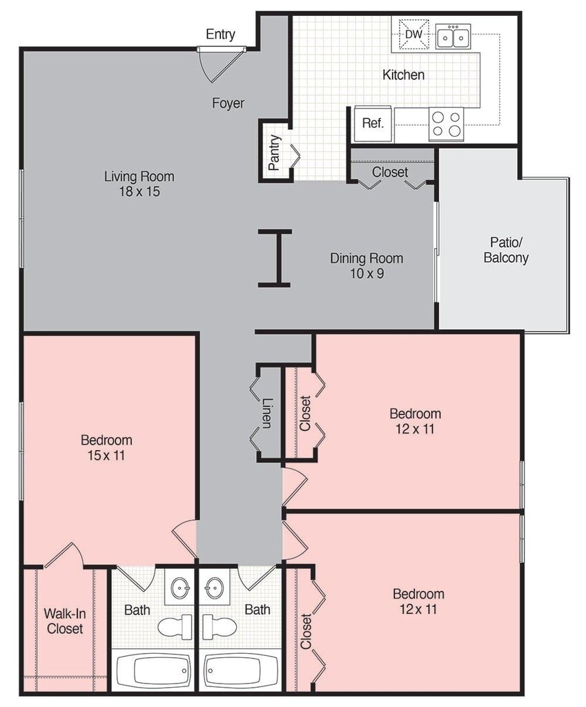 Modelo de apartamento: 1BR/1 Bath$1,0991 Dormitorio, 1 Baño, 950 sq ftNo Disponible1BR/1 Bath - Plano 1 1BR/1 Bath - New