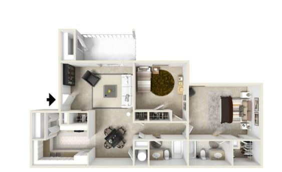 Modelo de apartamento: 1 bed 1 bath$9751 Dormitorio, 1 Baño, 756 sq ftNo Disponible1 bed 1 bath - Plano 1 2 Dormitorios