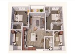 Modelo de apartamento: 1 BDR 1BADesde $1,6291 Dormitorio, 1 Baño, 851 sq ftDisponible Ahora1 BDR 1BA - Plano 1 2 Dormitorios