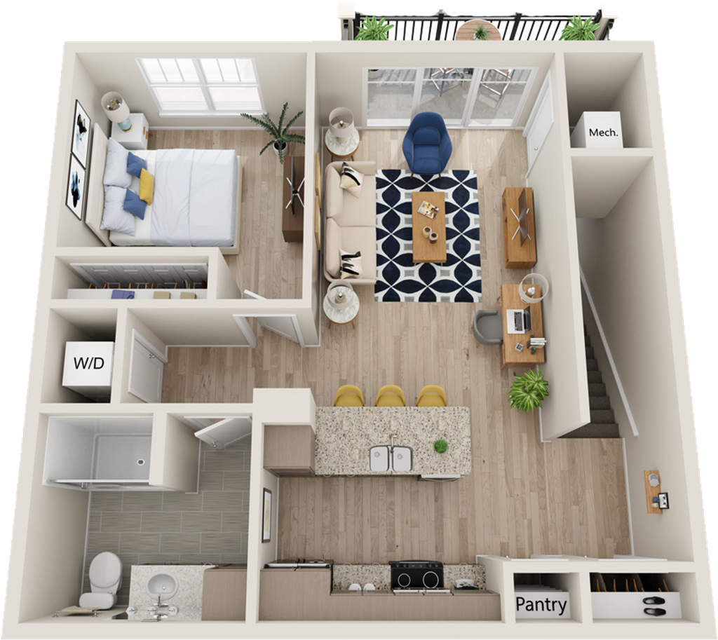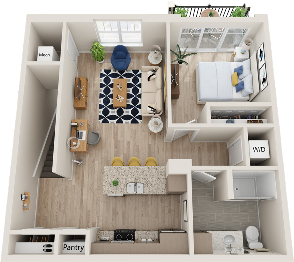 1 Dormitorio, 1 Baño, 791 pies²Disponible AhoraGalería del Modelo