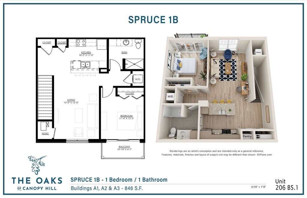 Spruce 1A - Plano 3 Unidad de apartamento: 1003-218Modelo de apartamento: Spruce 1A$1,5451 Dormitorio, 1 Baño, 791 sq ftDisponible AhoraOak 1A - Garage