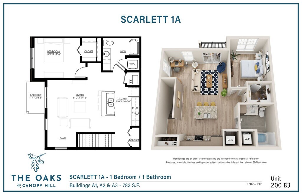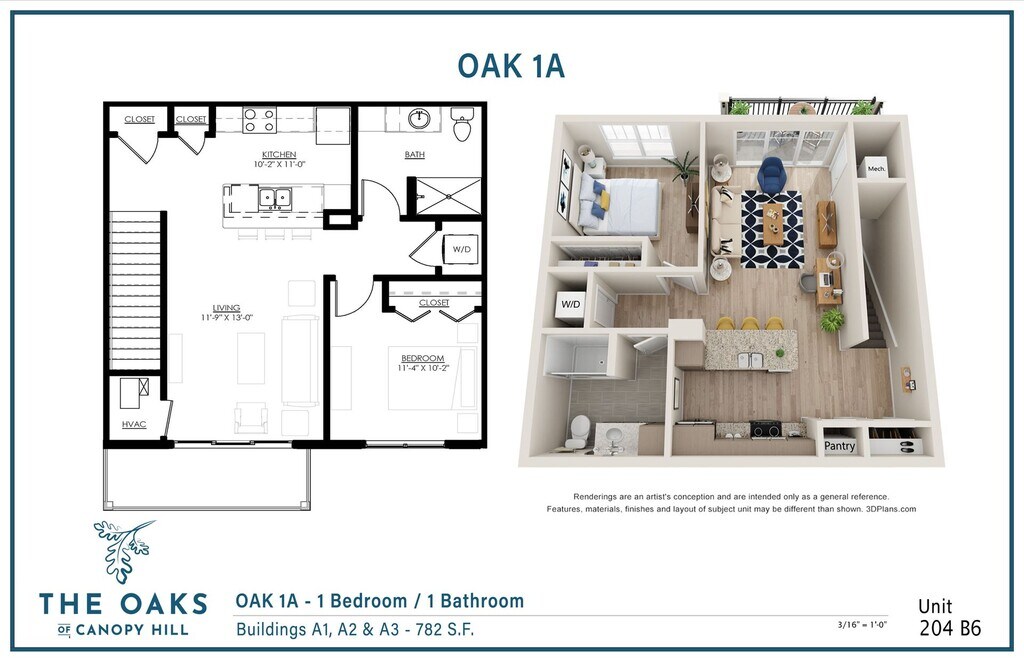 Oak 1A - Garage - Plano 3 Unidad de apartamento: 1001-204Modelo de apartamento: Oak 1A - Garage$1,7201 Dormitorio, 1 Baño, 782 sq ftDisponible April 21, 2026Scarlett 1A