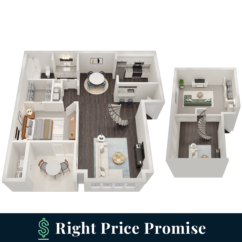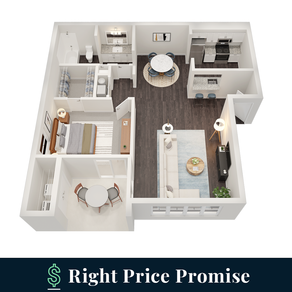 1 Dormitorio, 1 Baño, 750 pies²Disponible AhoraGalería del Modelo
