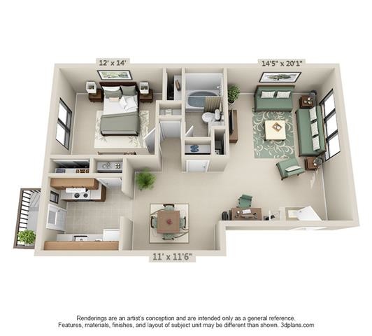 Modelo de apartamento: 1 BedDesde $1,2051 Dormitorio, 1 Baño, 840 sq ftDisponible Ahora![]()