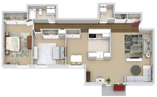 Modelo de apartamento: THE BRENTWOODLlame para Precios2 Dormitorios, 1.5 Baños, 1085 sq ftNo Disponible![]()