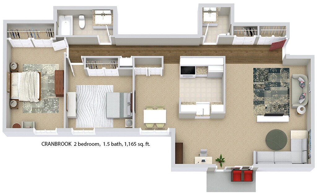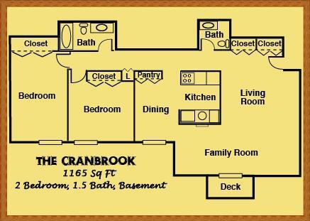 Modelo de apartamento: THE CRANBROOKLlame para Precios2 Dormitorios, 1.5 Baños, 1165 sq ftNo Disponible![]()