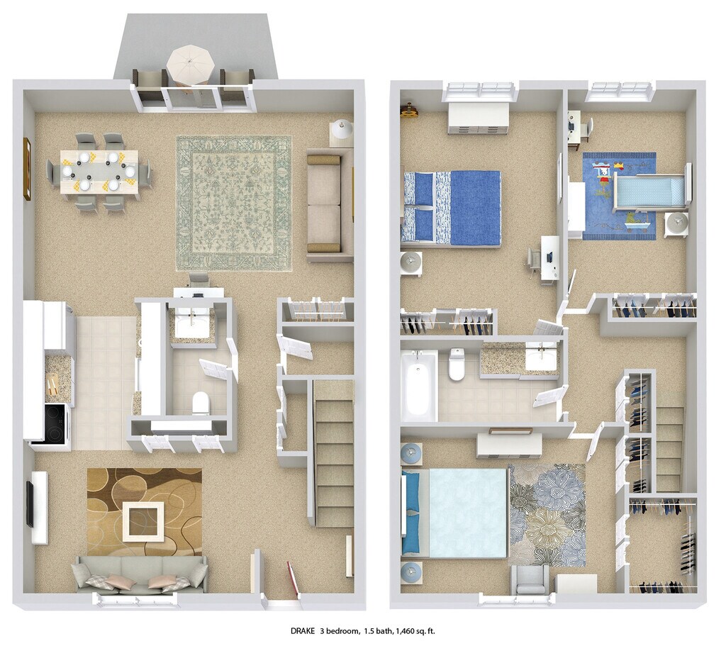 3 Dormitorios, 1.5 Baños, 1460 pies²Disponible AhoraGalería del Modelo