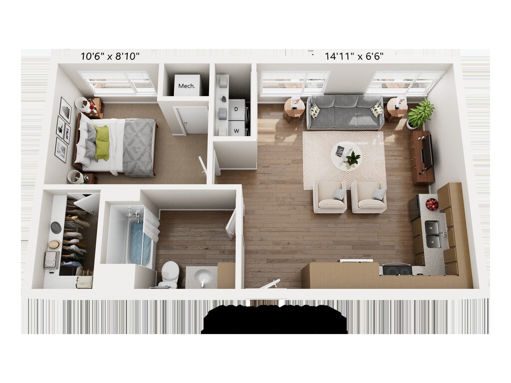 Modelo de apartamento: 1 Bed, 1 bathLlame para Precios1 Dormitorio, 1 Baño, sq ftNo Disponible![]()