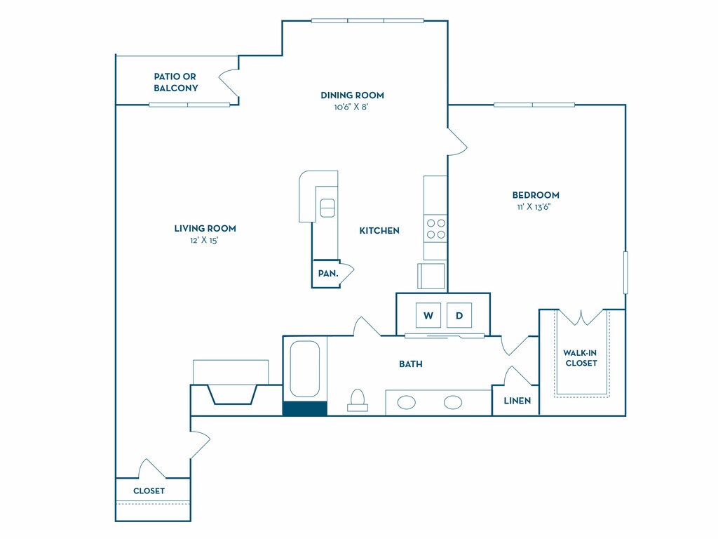 Modelo de apartamento: Pearl | RenovatedDesde $1,2421 Dormitorio, 1 Baño, 605 sq ftDisponible Ahora![]()