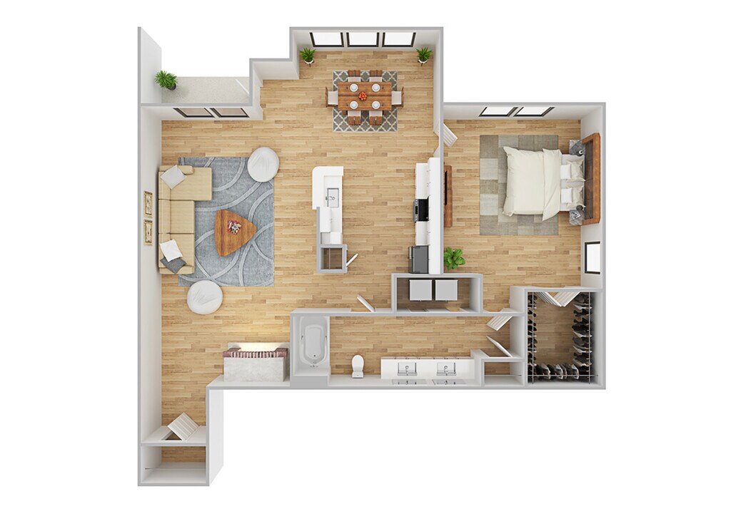 1 Dormitorio, 1 Baño, 669 pies²Disponible AhoraGalería del Modelo