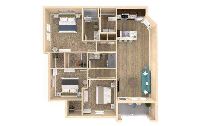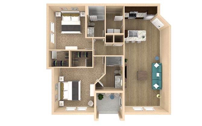 Modelo de apartamento: HorizonDesde $1,6491 Dormitorio, 1 Baño, 824 sq ftDisponible Ahora![]()