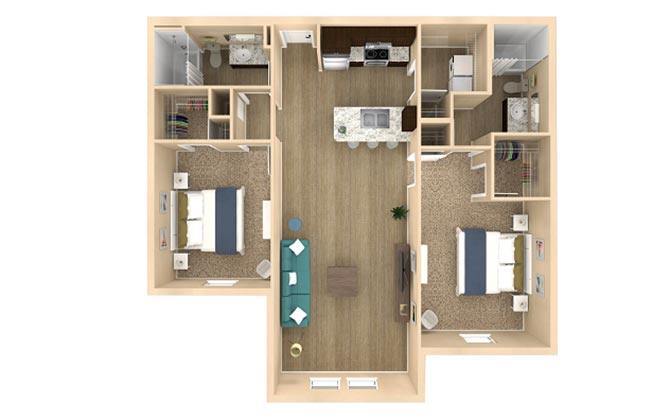 Modelo de apartamento: Horizon IDesde $1,7001 Dormitorio, 1 Baño, 889 sq ftDisponible January 21, 2026![]()