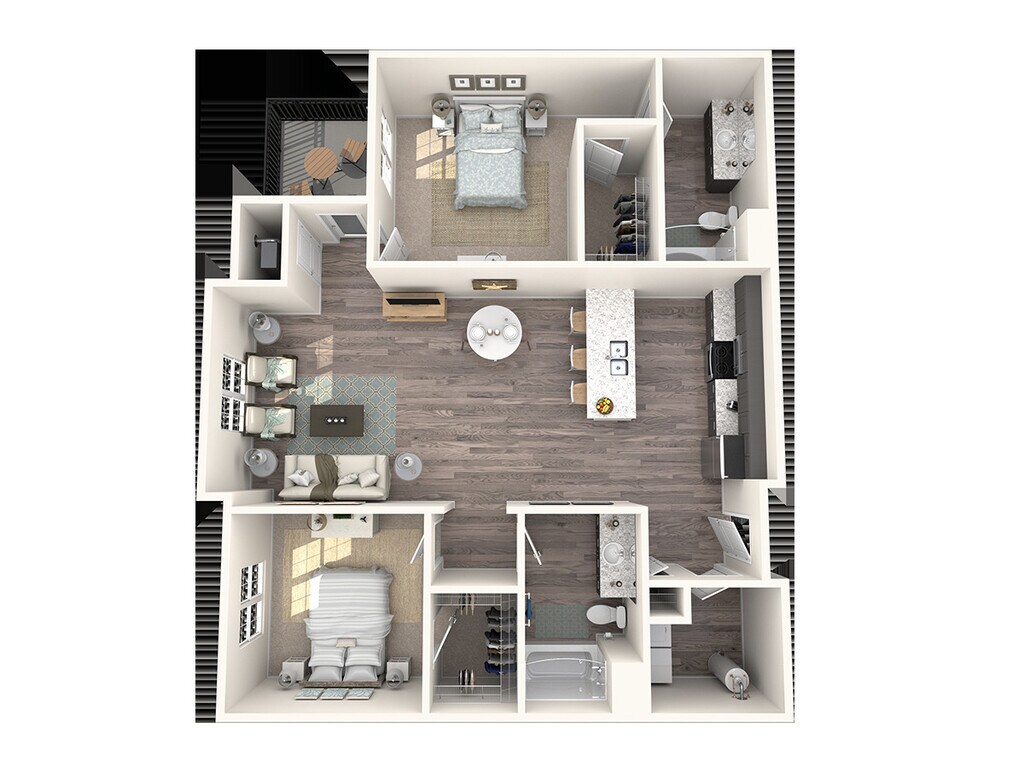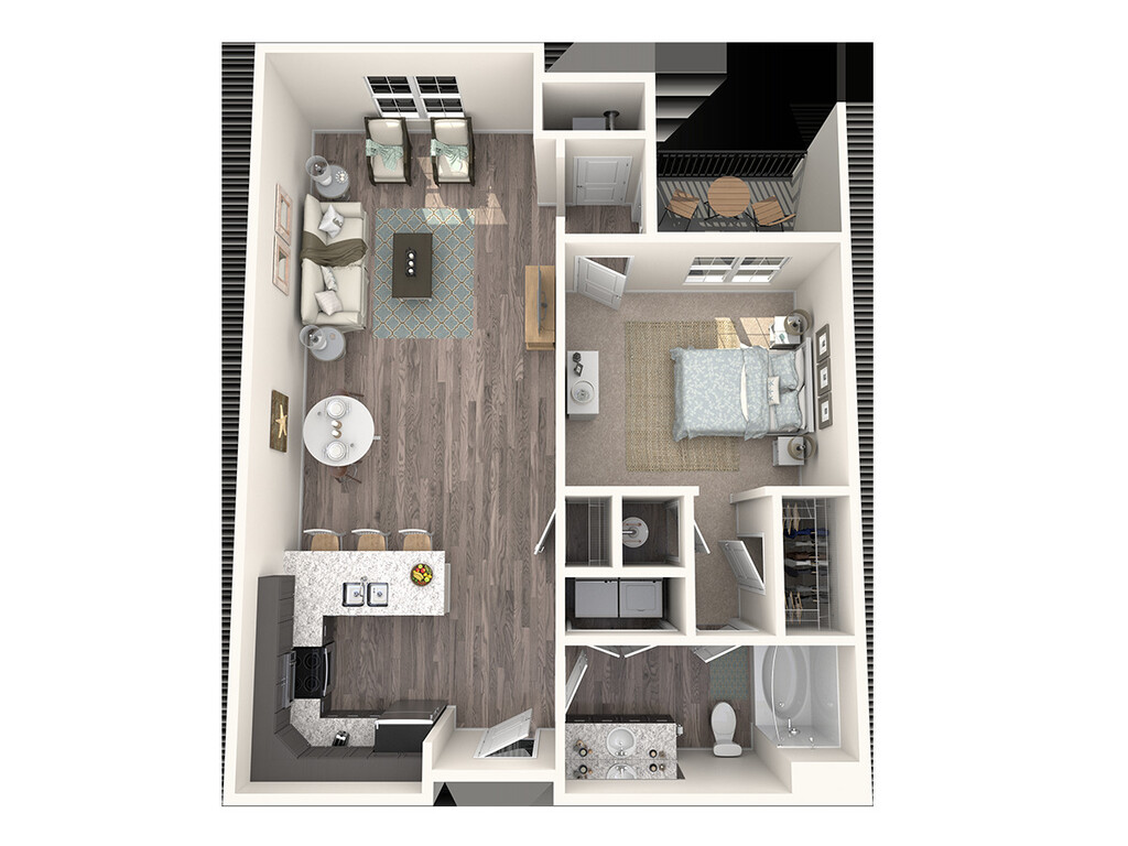 Modelo de apartamento: EscapeLlame para Precios1 Dormitorio, 1 Baño, 871 sq ftNo Disponible![]()