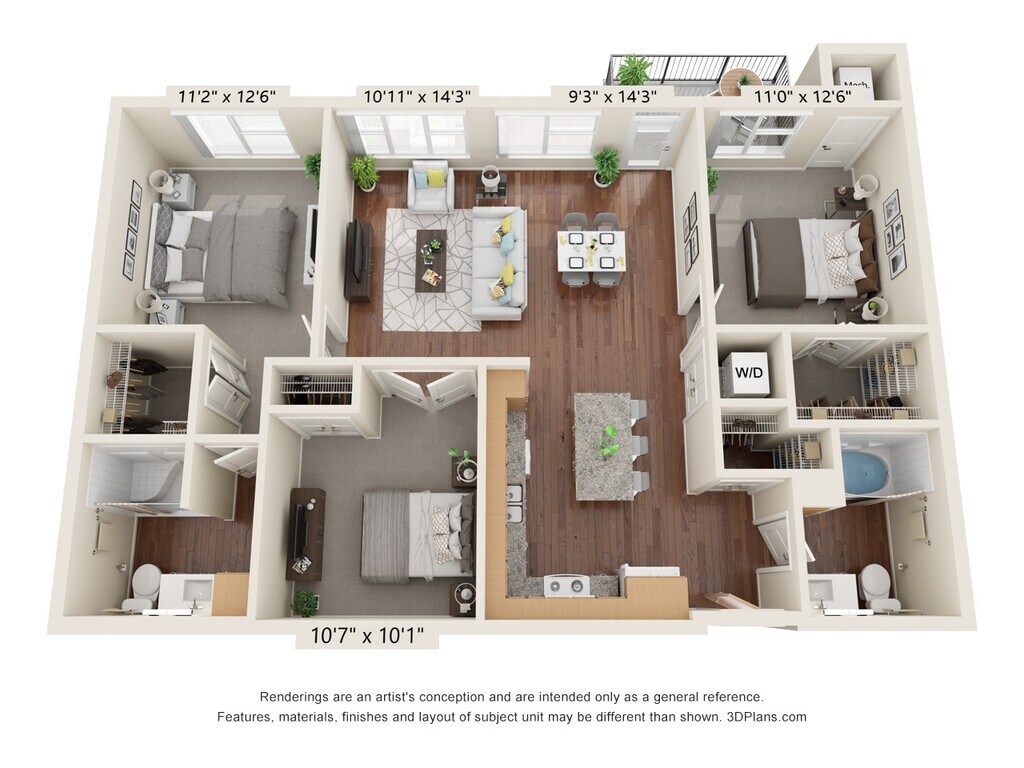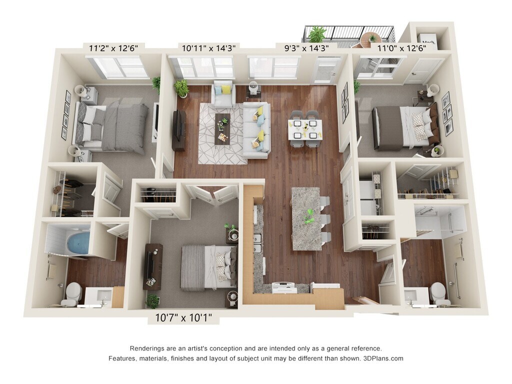 Two Bedroom - D - Plano 2 3 Dormitorios