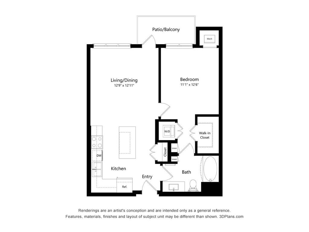 One Bedroom - E (Wheelchair Accessible) - Plano 1 ![]()