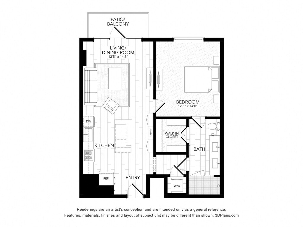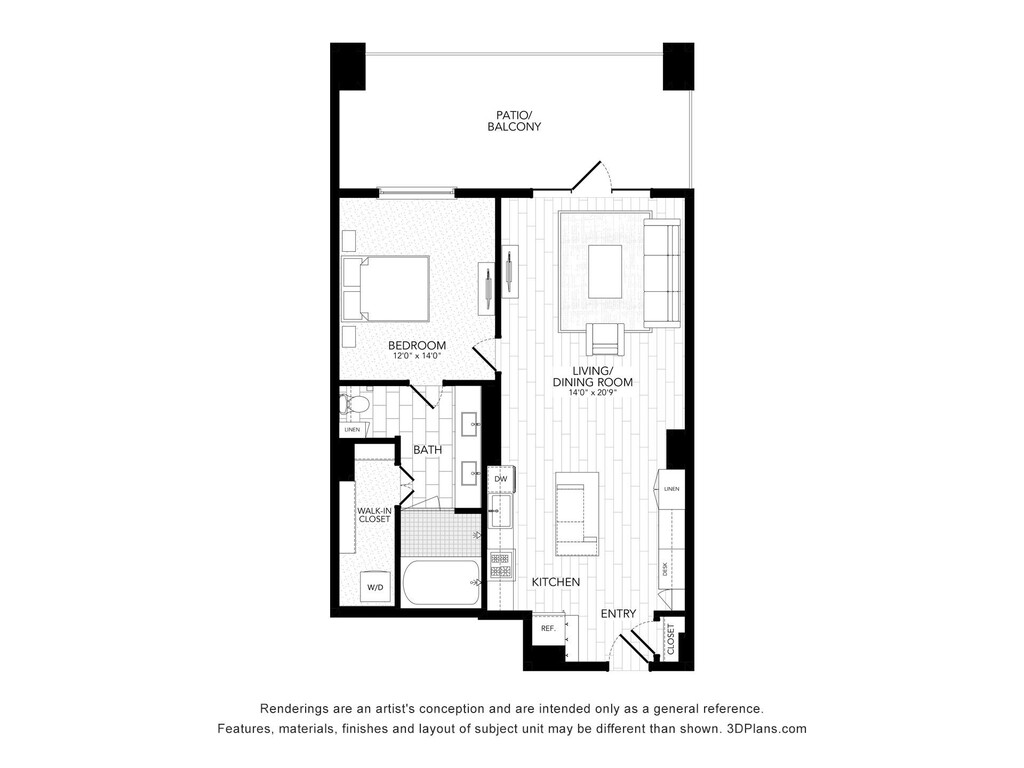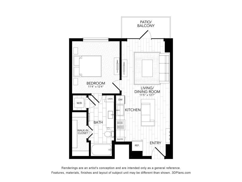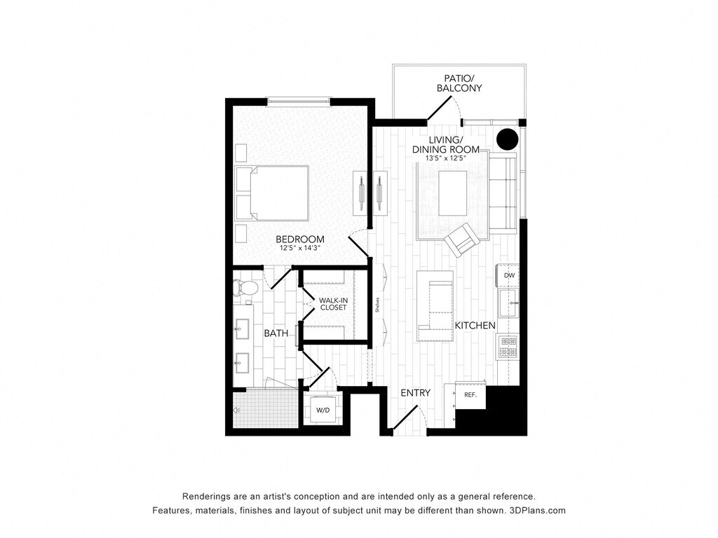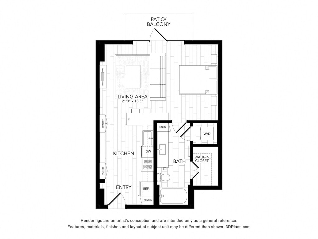 Estudio, 1 Baño, 588 pies²Disponible AhoraGalería del Modelo