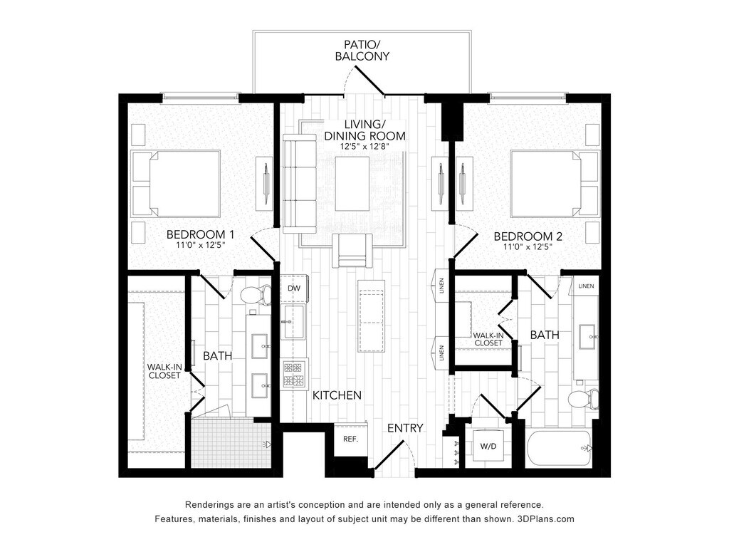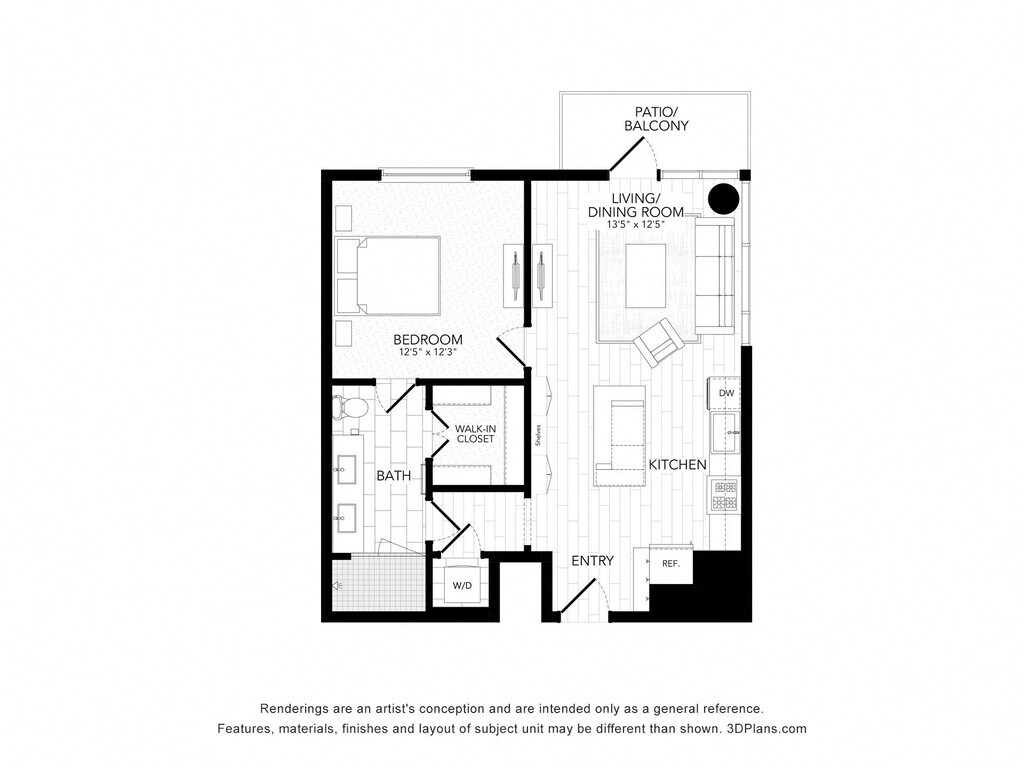 1 Dormitorio, 1 Baño, 813 pies²Disponible AhoraGalería del Modelo