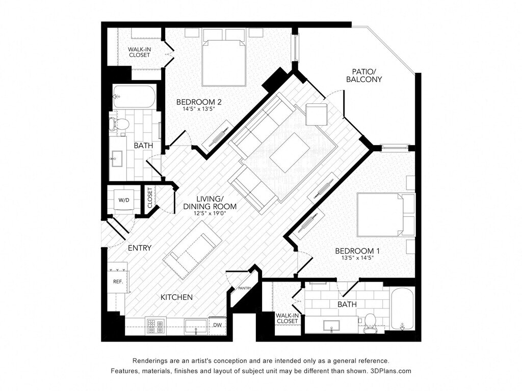 Modelo de apartamento: A3Desde $2,9341 Dormitorio, 1 Baño, 756 sq ftDisponible Ahora![]()
