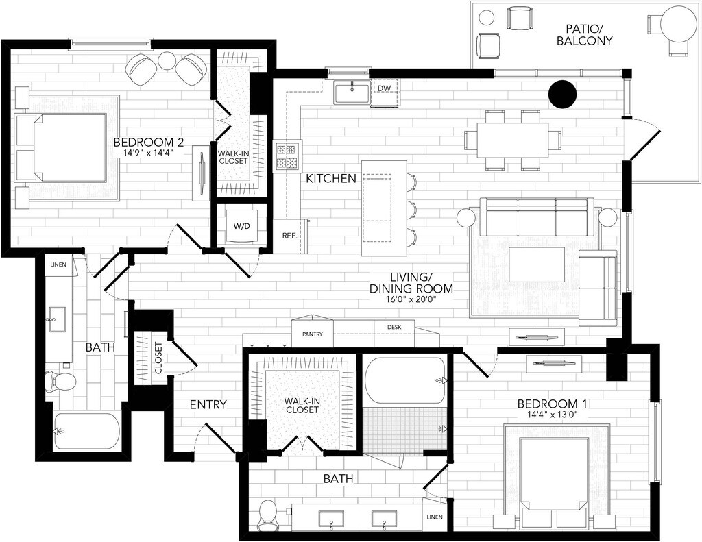 1 Dormitorio, 1 Baño, 927 pies²Disponible AhoraEl más grandeEsta opción tiene las unidades más grandes para este modeloGalería del Modelo