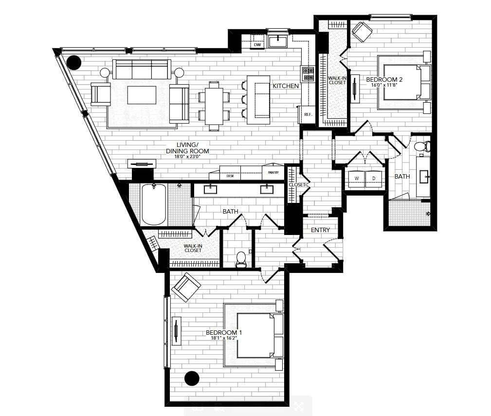 The Oliver is the pinnacle of experiential living. Contemporary, dark fixtures adorn stone and wood surfaces giving each residence a clean and natural look. The lighting in each home provides a warm and inviting glow. Each space is carefully designed with efficiency, elegance, and your convenience in mind. Select apartments also feature large patios and balconies providing additional room and that much needed connection to the outdoors, to the sun, the views and the landscape. Breathe in deeply and relax in your luxurious home. Introducing Dallas to a new way of living. A new level of refinement.