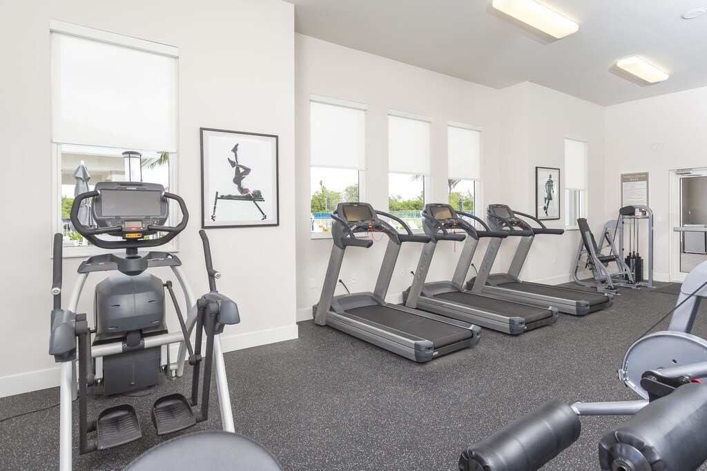 - Centro de fitness equipado con máquinas cardiovasculares y pesas libres.