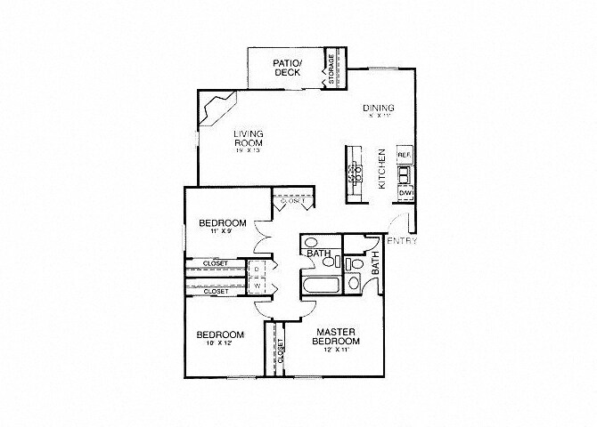Modelo de apartamento: Fairmont Short Term Lease3 Dormitorios, 2 Baños, 1204 sq ftDisponible AhoraLos planos son representaciones artísticas. Todas las dimensiones son aproximadas. El producto y las especificaciones reales pueden variar en tamaño o detalle. No todas las características están disponibles en cada vivienda en alquiler. Por favor, consulta con un representante para obtener más detalles.