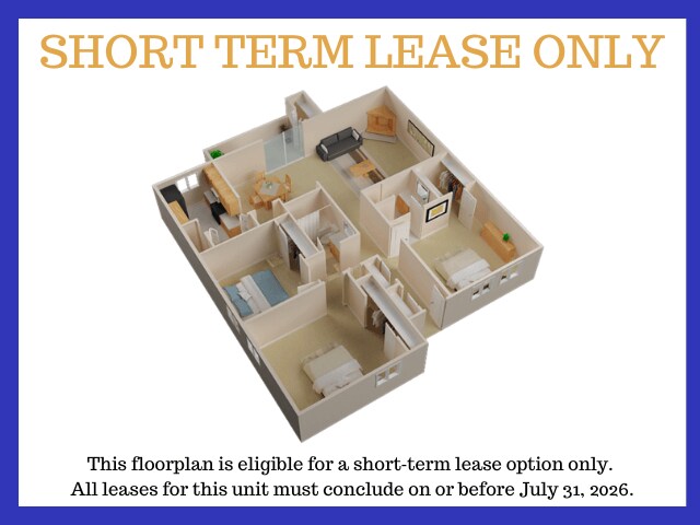Excelsior Short Term Lease - Plano 2 Los planos son representaciones artísticas. Todas las dimensiones son aproximadas. El producto y las especificaciones reales pueden variar en tamaño o detalle. No todas las características están disponibles en cada vivienda en alquiler. Por favor, consulta con un representante para obtener más detalles.