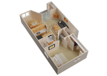 1 Dormitorio, 1 Baño, 710 pies²Galería del Modelo